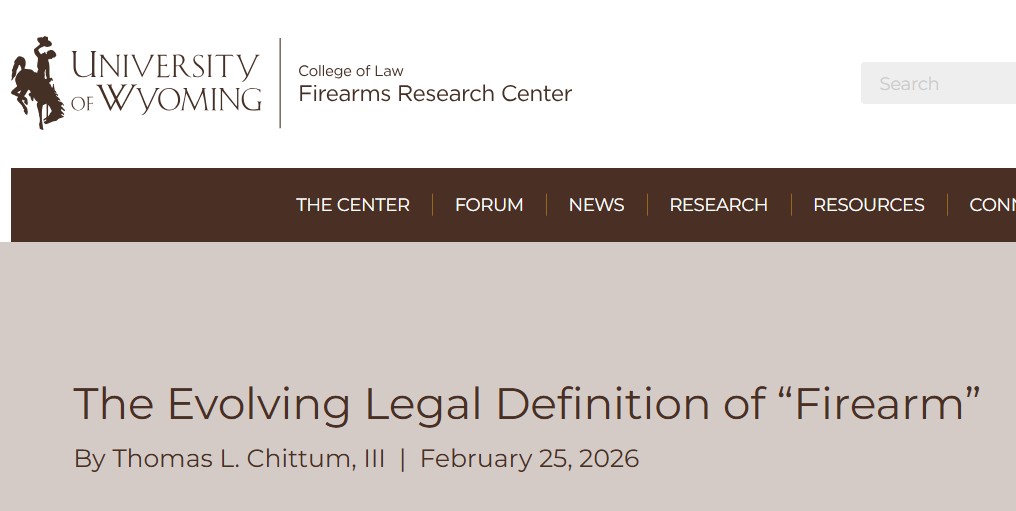 How is an inline muzzleloader like a taser? Read “The Evolving Legal Definition of ‘Firearm’” to find out. Thanks to the University of Wyoming College of Law’s Firearms Research Center for publishing my article on its Forum.